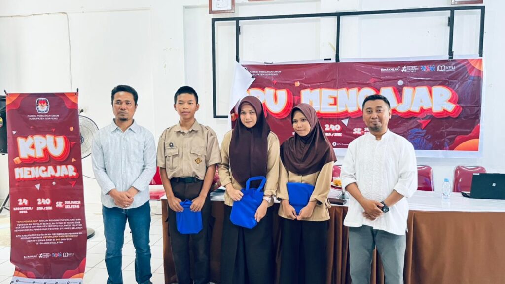 Soppeng — Komisi Pemilihan Umum (KPU) Kabupaten Soppeng melaksanakan kegiatan KPU Mengajar dengan tema “KPU Mengajar, Jemput Pemilih dari Sekolah” pada Jumat, 23 Januari 2026. Kegiatan ini berlangsung mulai pukul 13.00 WITA hingga selesai dan bertempat di Ruang Patiseri SMKN 1 Soppeng.