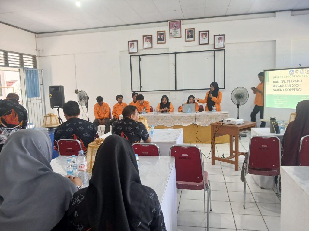 Soppeng, 11 September 2025 — Mahasiswa KKN-PPL Terpadu Universitas Negeri Makassar (UNM) Angkatan XXXI yang ditempatkan di SMKN 1 Soppeng melaksanakan Seminar Program Kerja pada Kamis (11/09). Kegiatan ini dihadiri oleh pihak sekolah, guru pamong, serta para mahasiswa peserta KKN-PPL.