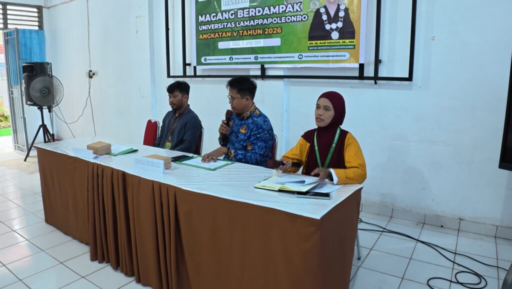 Soppeng, 17 April 2026 — Mahasiswa Universitas Lamappapoleonro, Faraditah, melaksanakan kegiatan Seminar Program Kerja Magang Berdampak yang berlangsung di SMKN 1 Soppeng pada hari Jumat (17/04/2026). Kegiatan ini merupakan bagian dari implementasi program magang yang bertujuan memberikan kontribusi nyata bagi lingkungan sekolah melalui berbagai inovasi dan pengembangan sistem berbasis teknologi.