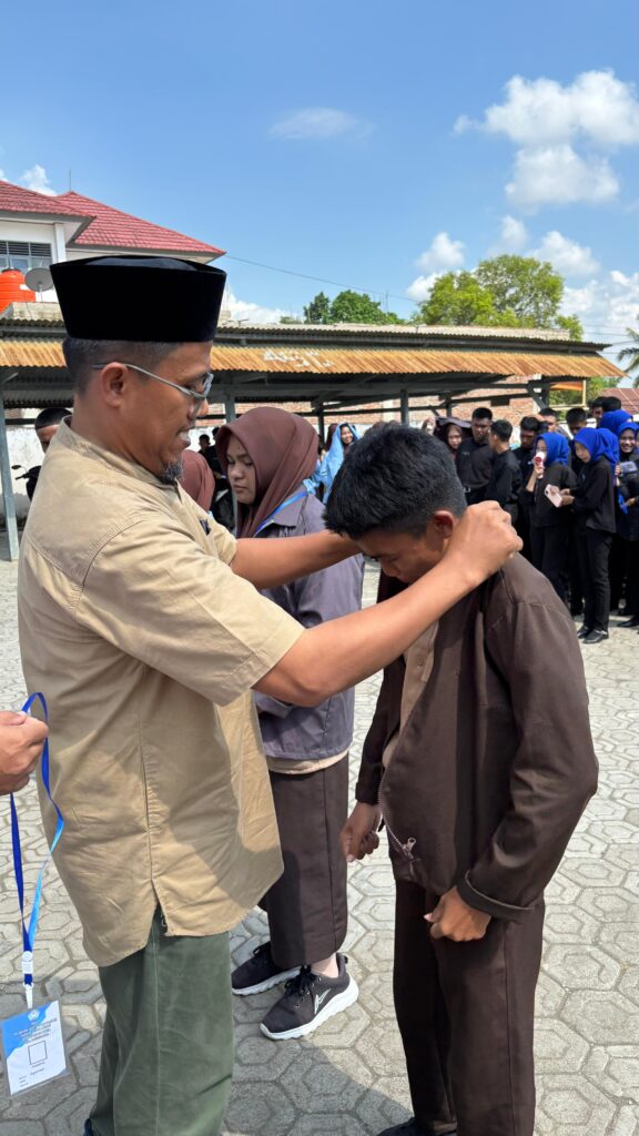 Sebagai tanda pelepasan secara simbolis, Kepala Sekolah menyematkan atribut tanda peserta PKL kepada perwakilan siswa dari masing-masing jurusan.