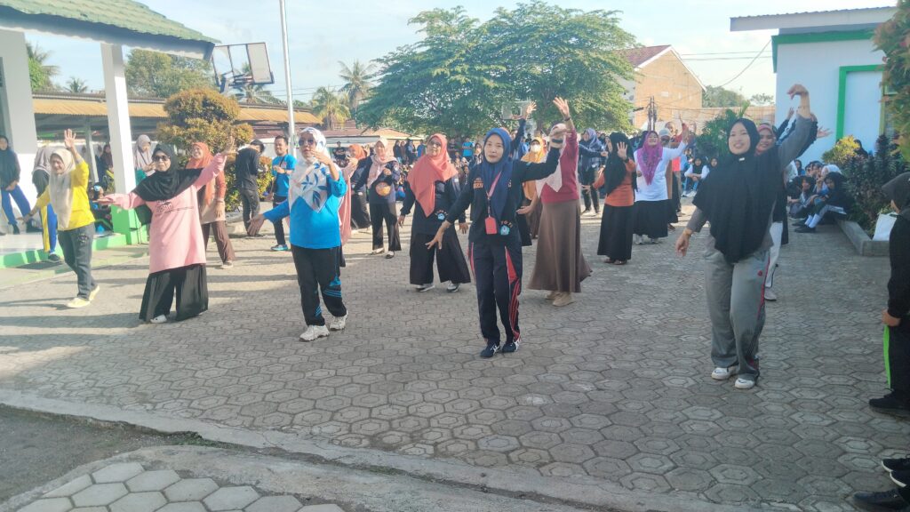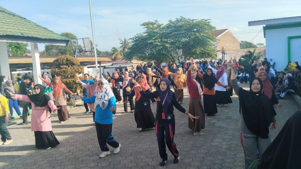 Soppeng, 13 September 2024– Pagi yang cerah di SMKN 1 Soppeng disambut dengan semangat juang para tenaga pendidik dan kependidikan (tendik). Dalam upaya menjaga kesehatan dan kebugaran tubuh, seluruh tendik secara rutin melaksanakan senam pagi bersama. Kegiatan yang dilaksanakan di Lapangan Sekolah, ini menjadi agenda tetap setiap 2 (Dua) minggu sekali pada setiap Jum’at.
